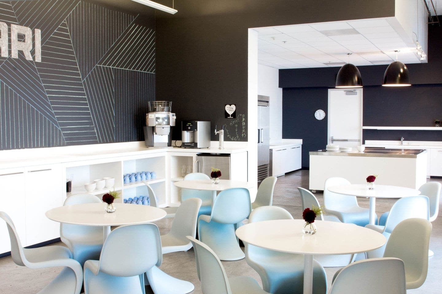 A nice looking breakout kitchen area….you can never have too many pantone chairs from Vitra it seems! We’ll pretend we can’t see the standard ceiling tiles.