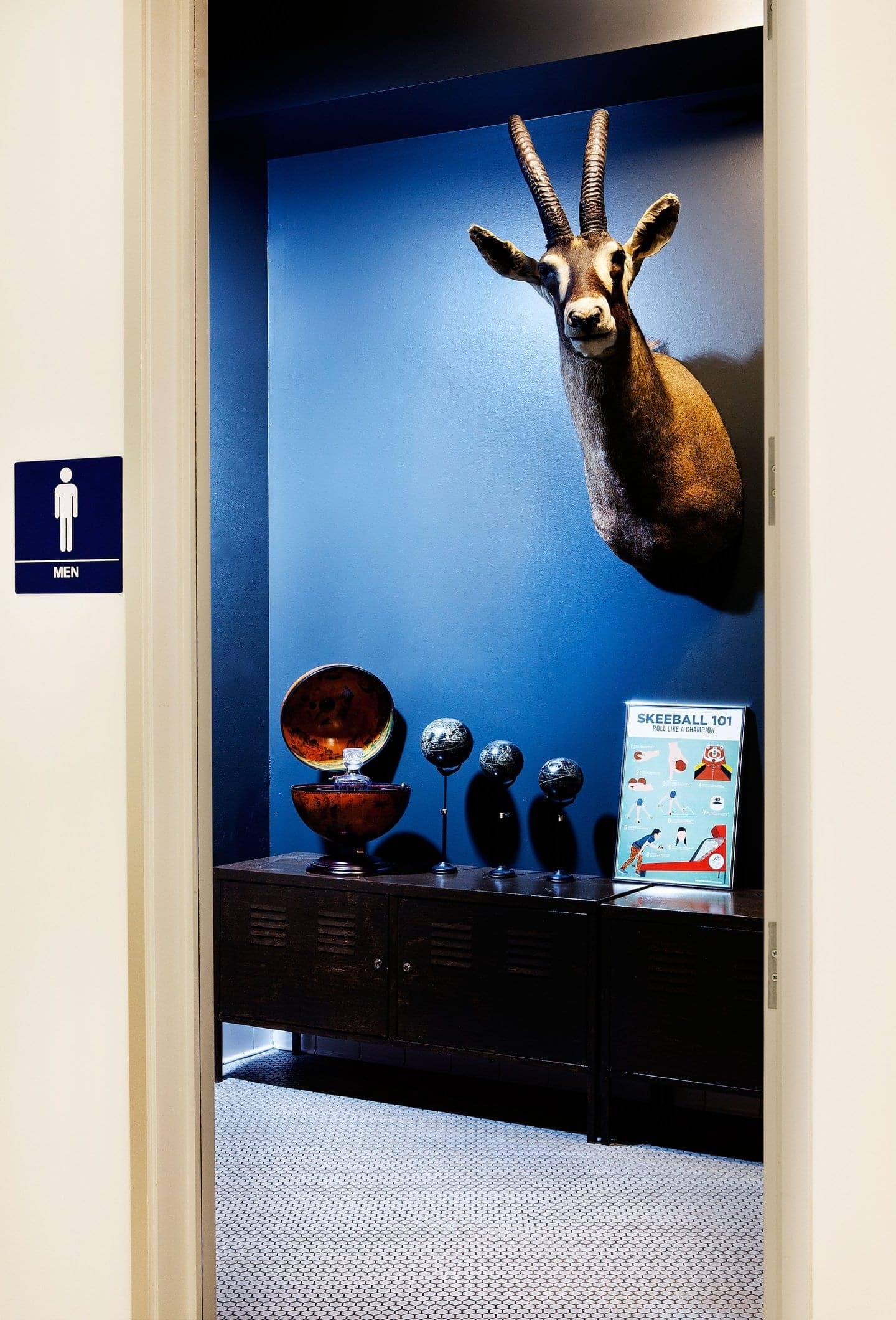 Who doesn’t have a antelope’s head (we think that’s what it is) in the male lavatories of their office? I’m not sure this is very politically correct, but I guess the alpha males who work in San Francisco for Airbnb hunt endangered animals for fun at weekends (besides plotting to end the world during work hours). Well that and playing Skeeball.